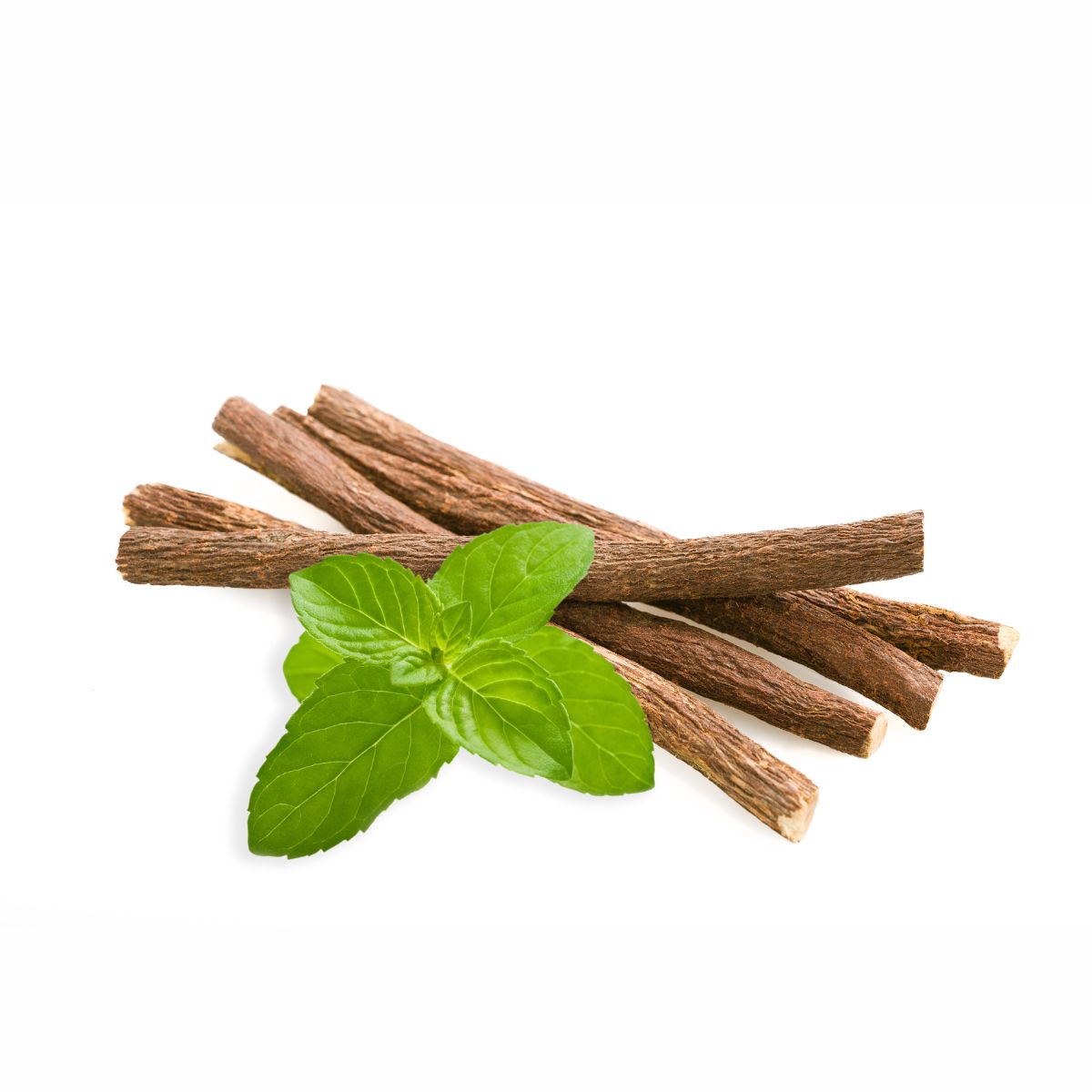 Licorice brightens the skin by reducing dark spots and pigmentation while soothing irritation with its anti-inflammatory properties.